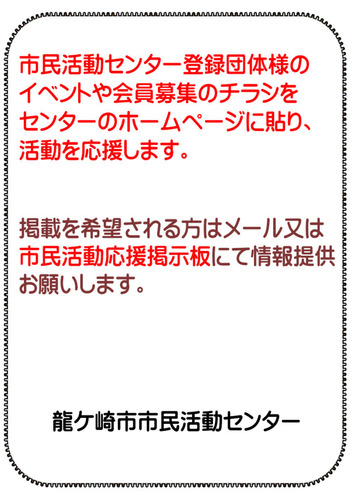 ようこそ、龍ケ崎市市民活動センターへ